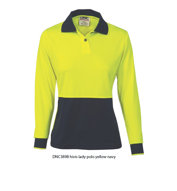 Dnc,3898. Ladies Hivis Two Tone Polo Shirt – Long Sleeve